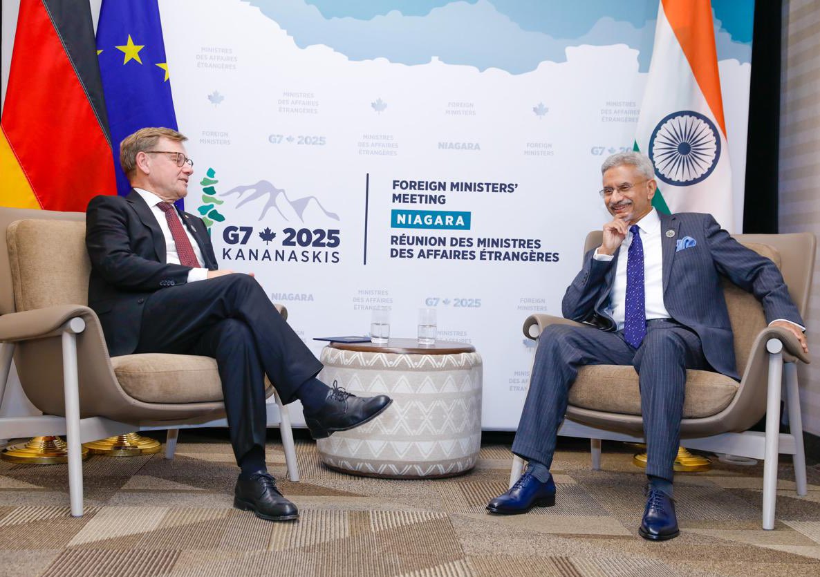 External Affairs Minister Dr. S. Jaishankar met German Foreign Minister Johannes Wadephul on the sidelines of the G7 Foreign Ministers’ Meeting in Niagara, Canada, to discuss ways to advance the India–Germany Strategic Partnership and strengthen India–EU relations.